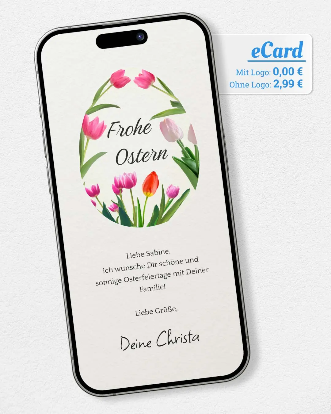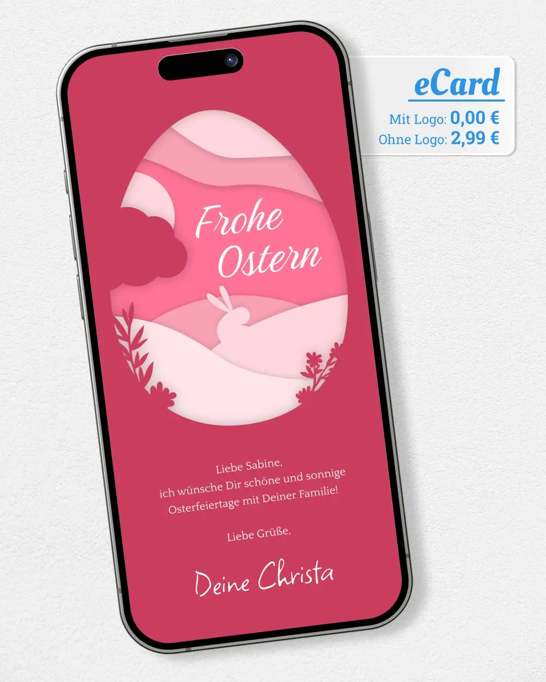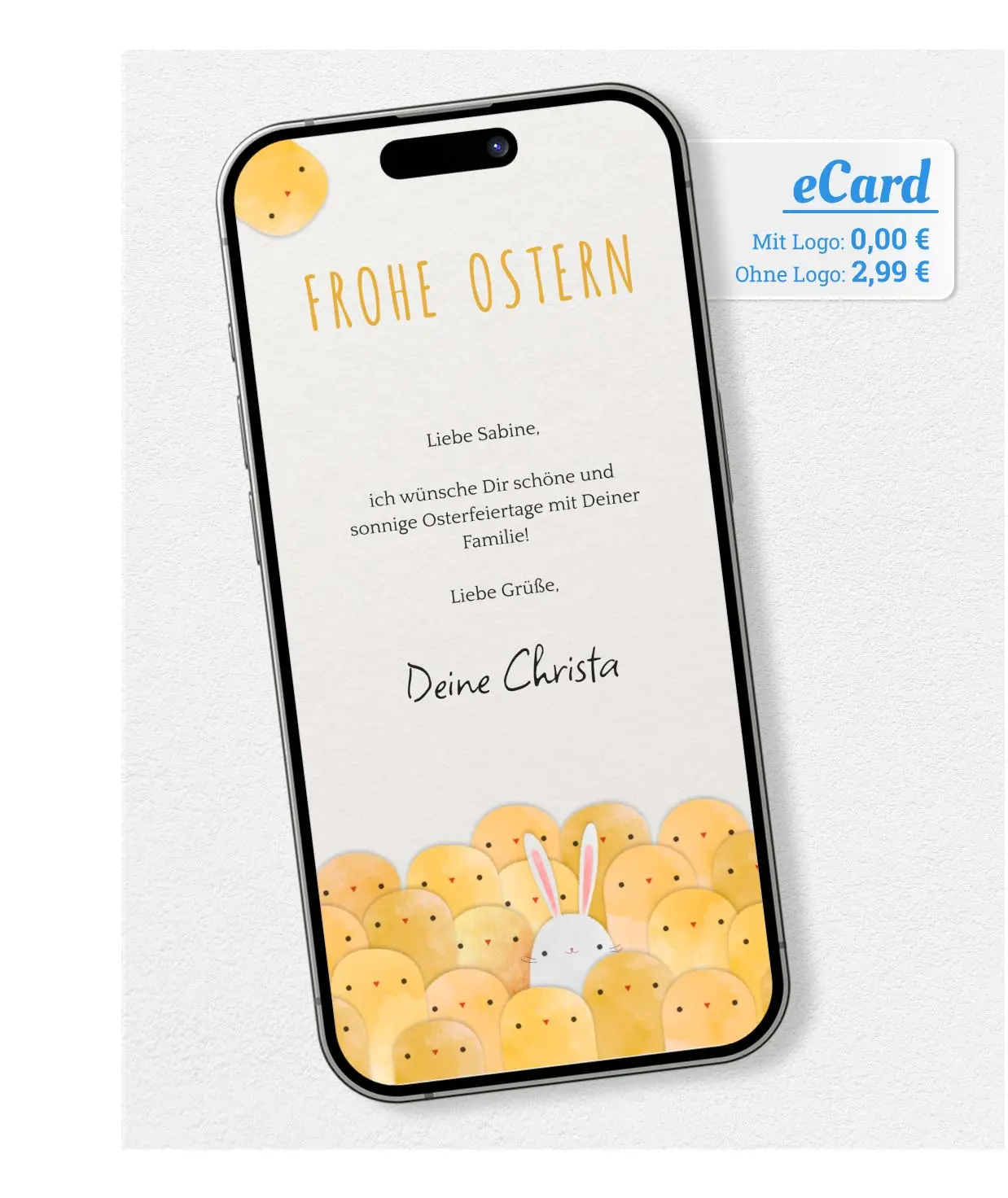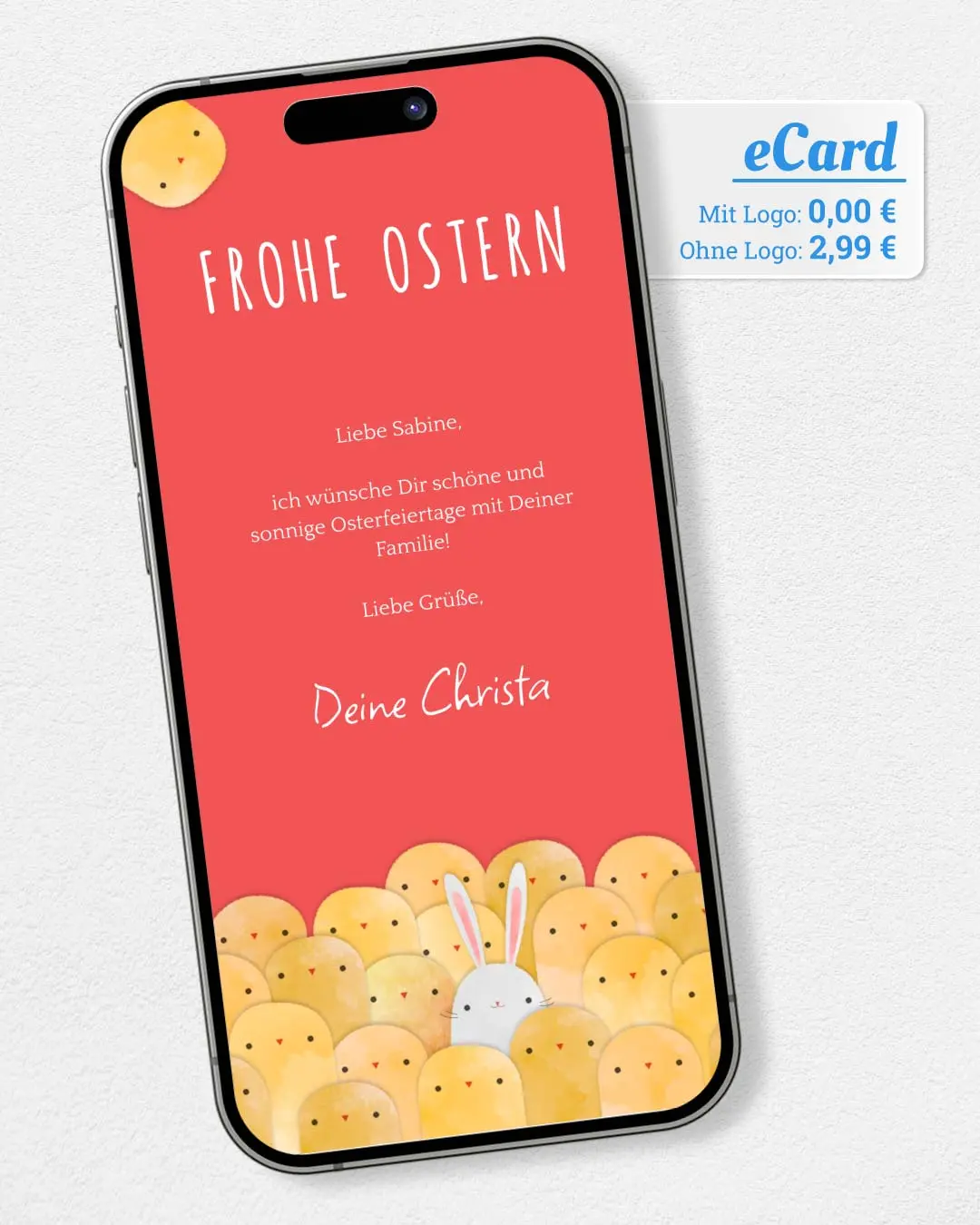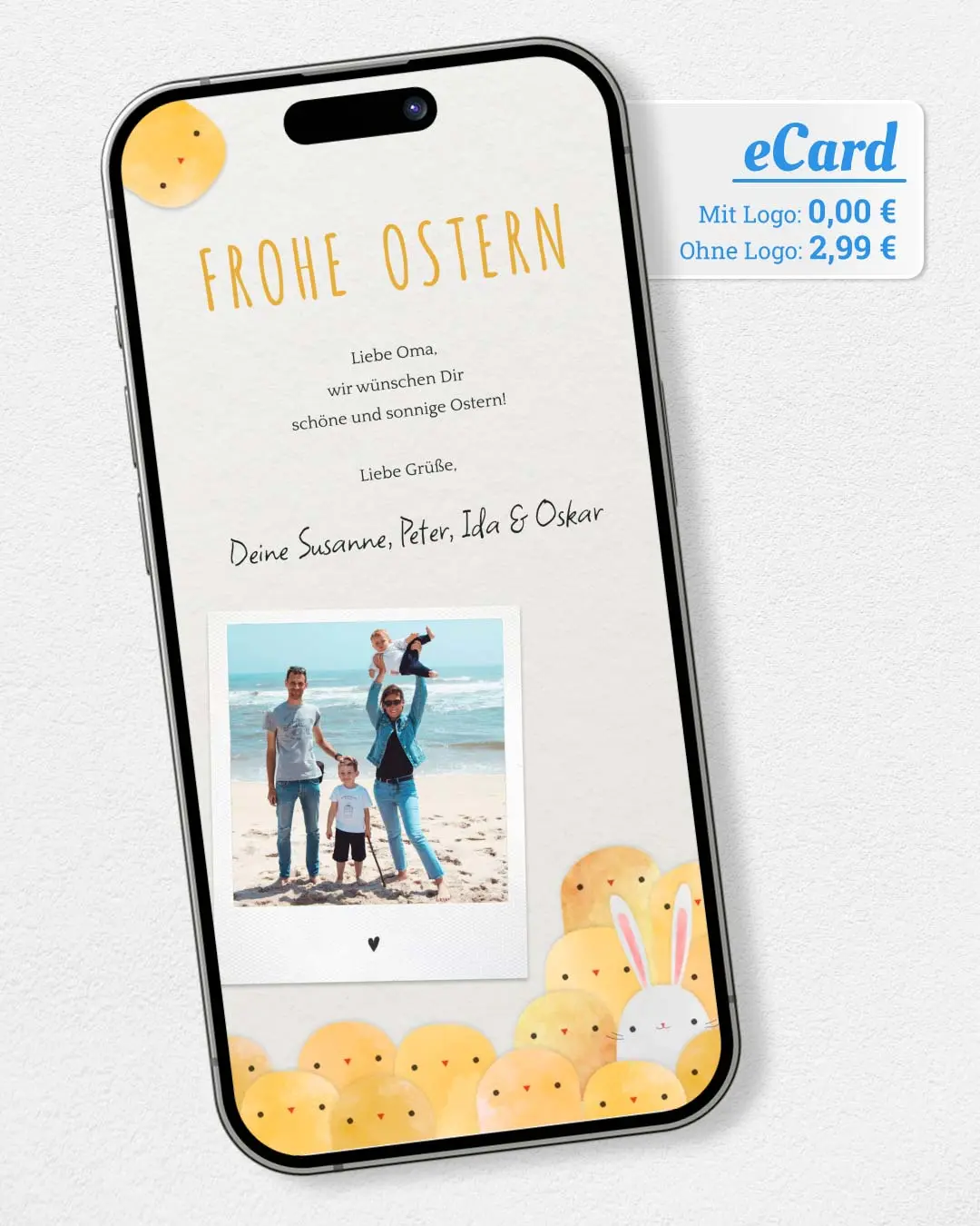 Ostern steht vor der Tür, sende Freunden & Familie einen ganz besonderen Ostergruß per WhatsApp. Jetzt gestalten mit Text & Foto in nur 2 Min. Einfach kostenlos ausprobieren.