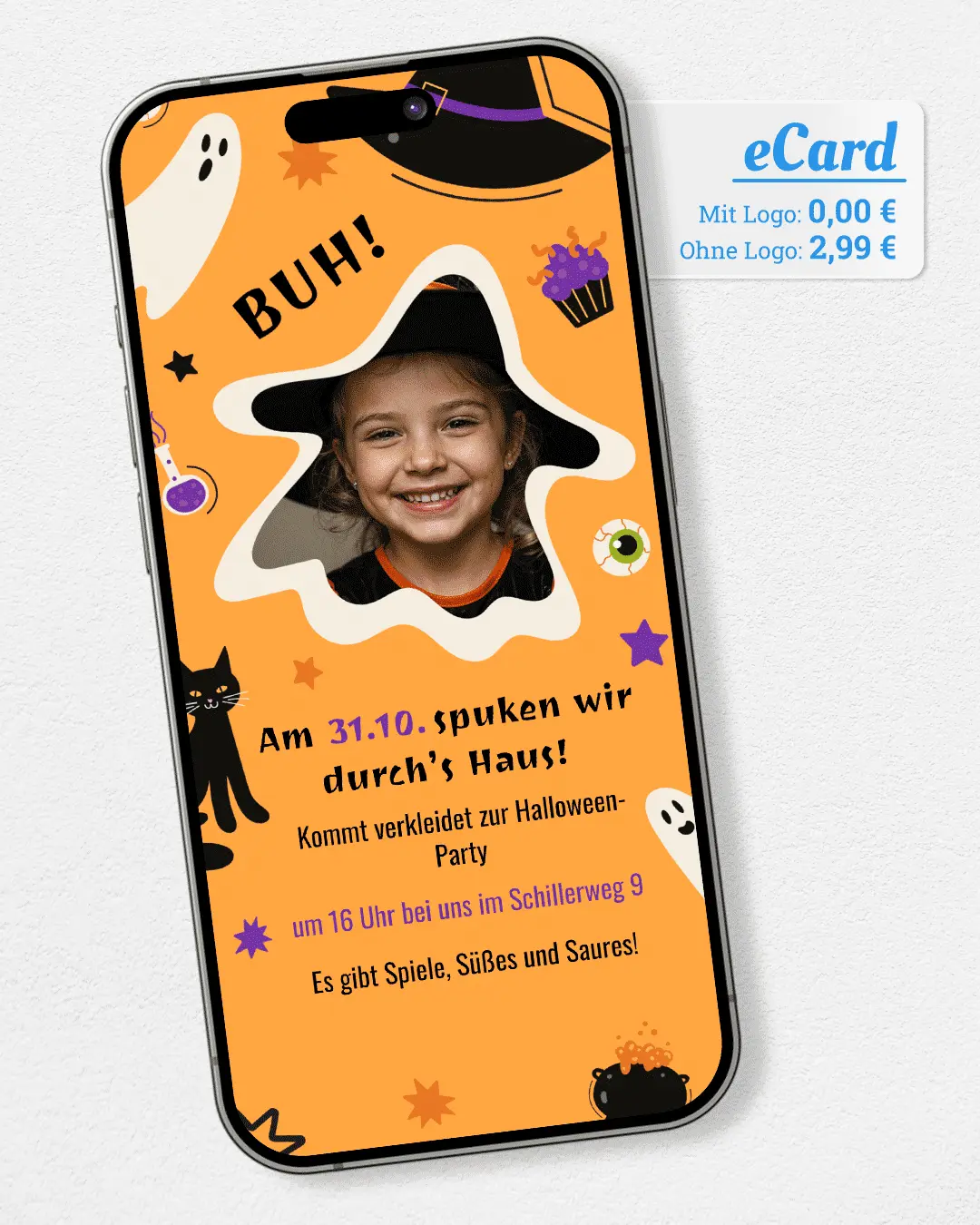 Halloween Einladung Kids mit Foto