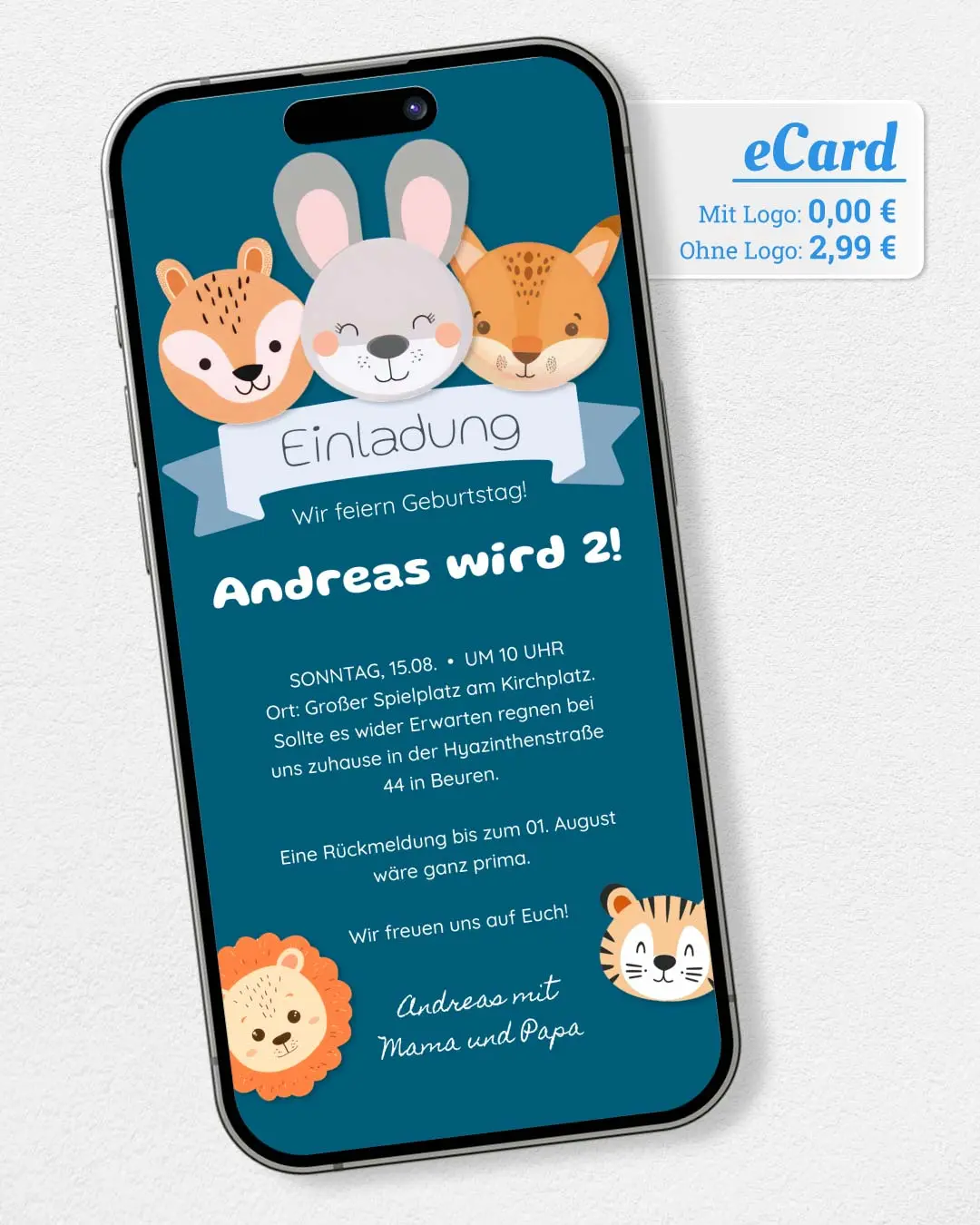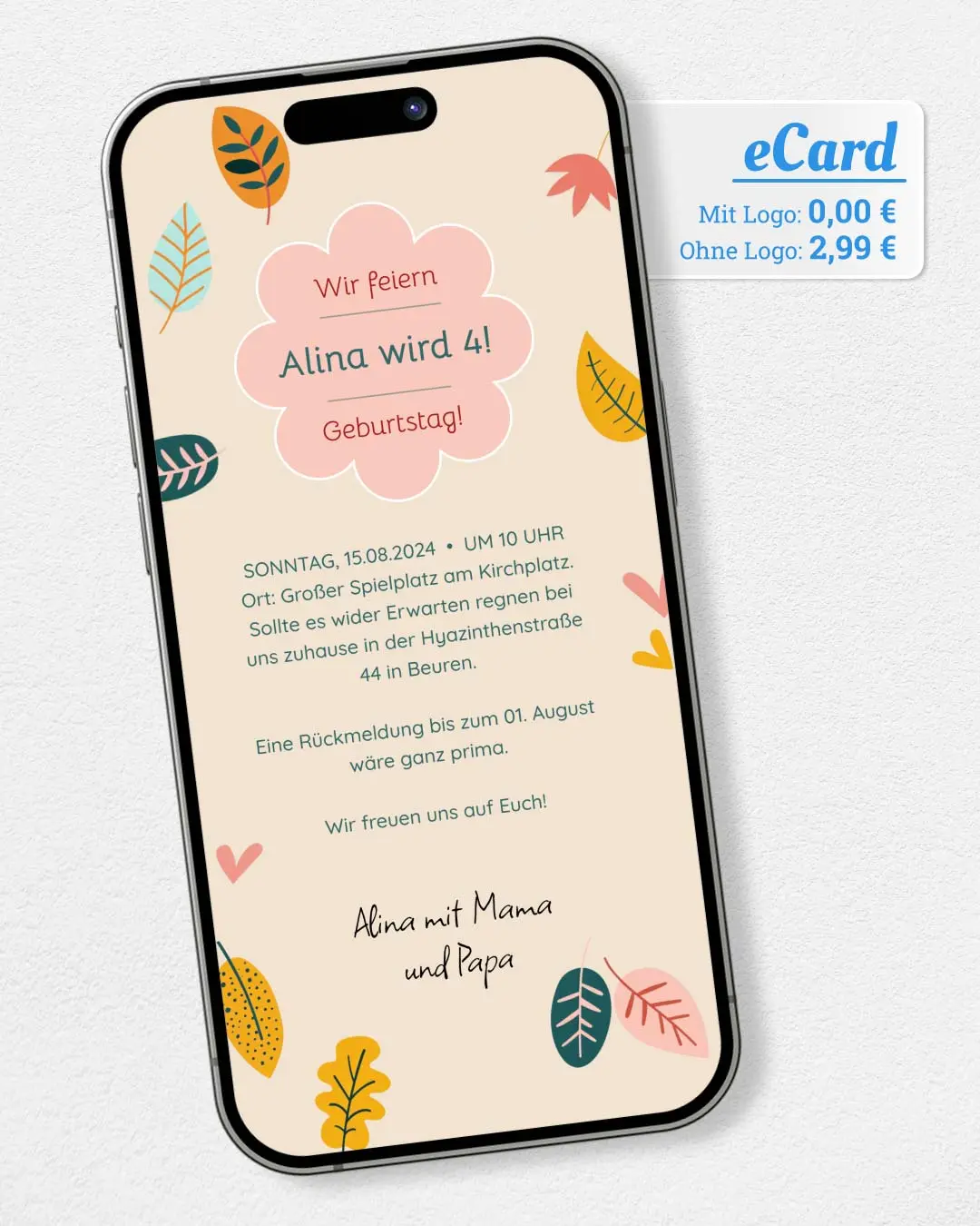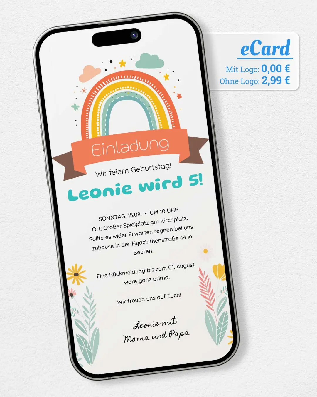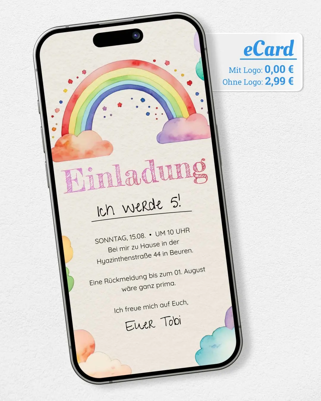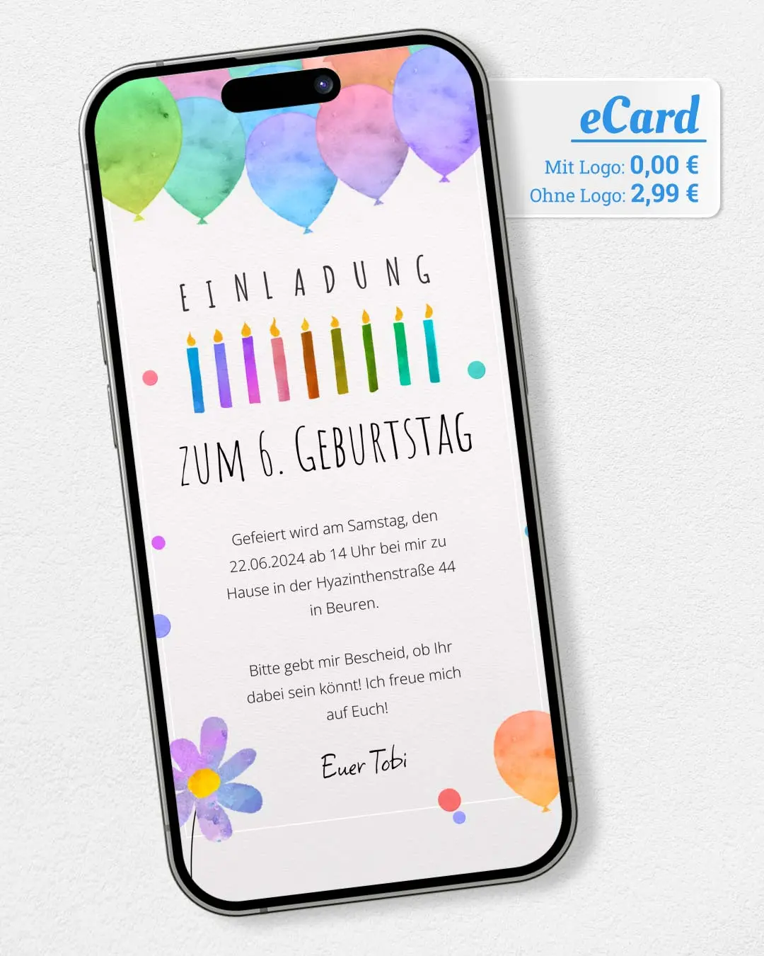 Entdecke unsere wunderschönen digitalen Einladungen für Kindergeburtstage. Sofort per WhatsApp verschickbar – bunte Designs, die jedes Kind begeistern!