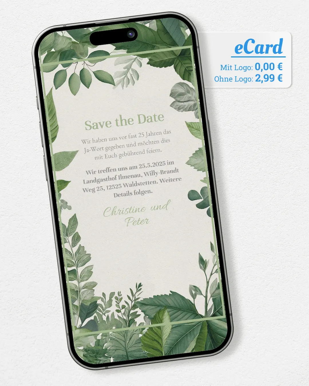 Kündige deine Feier mit einem Save the Date der ganz besonderen Art an. Wähle eine Vorlage aus, ergänze Text & Foto und versende dein Save the Date mit nur einem Klick per WhatsApp.